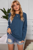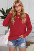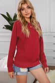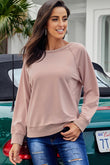 Round Neck Raglan Sleeve Exposed Seam Sweatshirt