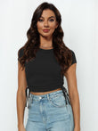 Round Neck Short Sleeve Drawstring Tee