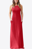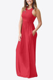 Round Neck Sleeveless Dress with Pockets