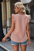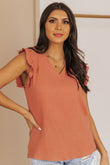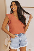 Ruffle Shoulder V-Neck Top