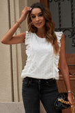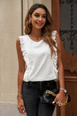 Ruffle Trim Round Neck Sleeveless Top