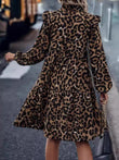 Ruffled Leopard Mock Neck Long Sleeve Mini Dress