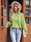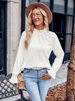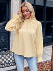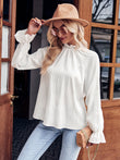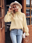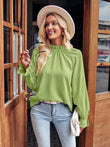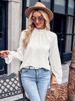 Ruffled Mock Neck Flounce Sleeve Blouse