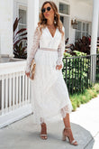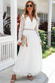 Scalloped Hem Flounce Sleeve Lace V-Neck Maxi Dress