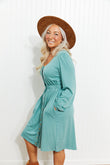Scoop Neck Empire Waist Long Sleeve Mini Dress