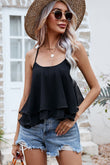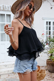 Scoop Neck Spaghetti Strap Ruffle Hem Tank