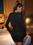 Sequin Mock Neck Long Sleeve Dress