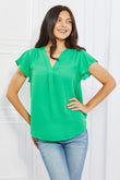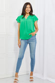 Sew In Love Just For You Full Size Short Ruffled Sleeve length Top in Green