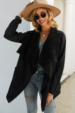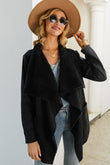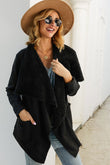Sherpa Lining Waffle-Knit Open Front Jacket