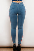 Side Stripe Contrast Buttoned Skinny Jeans