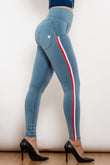Side Stripe Contrast Zip Closure Skinny Jeans