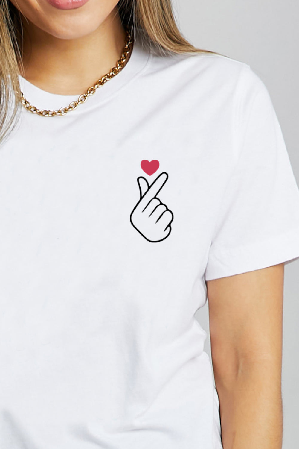 Simply Love Finger Heart Emoji Graphic Cotton T-Shirt