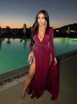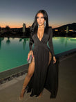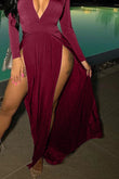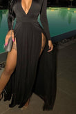 Slit Plunge Long Sleeve Dress