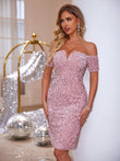 Slit Sequin Off-Shoulder Mini Dress