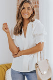 Smocked Flounce Sleeve Notched Neck Blouse