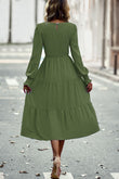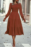Smocked Long Puff Sleeve Tiered Midi Dress