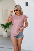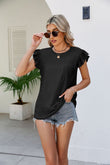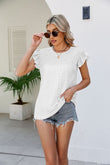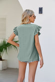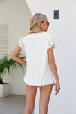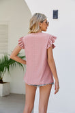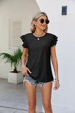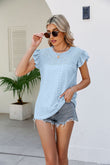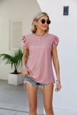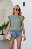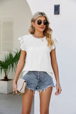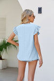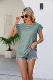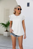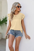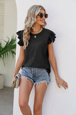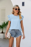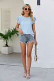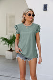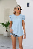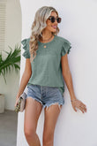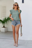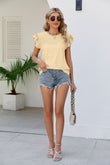 Smocked Round Neck Flutter Sleeve Top