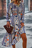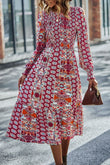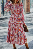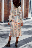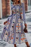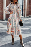 Smocked Round Neck Lantern Sleeve Midi Dress