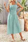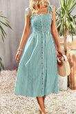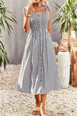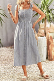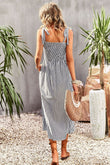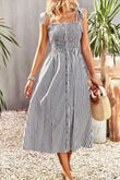 Smocked Tie Strap Sleeveless Striped Midi Dress