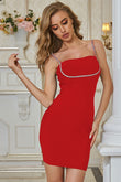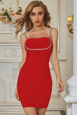 Spaghetti Strap Bodycon Dress with Rhinestone Decoration