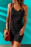 Spaghetti Strap Ribbed Tulip Hem Mini Dress