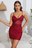 Spaghetti Strap Sweetheart Neck Lace Bodycon Dress