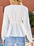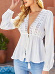 Spliced Lace Plunge Tie Front Blouse