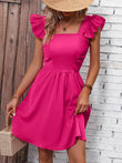 Square Neck Butterfly Sleeve A-Line Dress