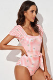 Square Neck Tie Detail One-Piece Swimsuit