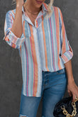 Striped Button-Up Curved Hem Shirt with Breast Pocket