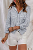 Striped Button-Up Roll-Tab Sleeve Shirt