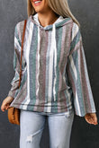 Striped Drawstring Detail Drop Shoulder Hoodie