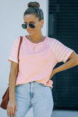 Striped Round Neck Raglan Sleeve Tee