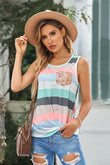 Striped Sequin Pocket Tank Top