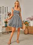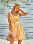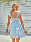 Striped Smocked Ruffle-Shoulder Sleeveless Dress