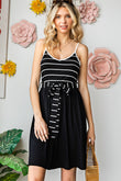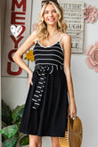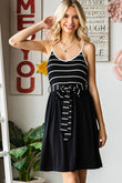 Striped Spaghetti Strap Belted Dress
