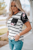 You will fall in love with this classic T-shirt. It features with patch pocket and black striped print.