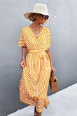 Striped Tie Belt Midi Dress