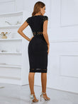 Studded Spliced Mesh V-Neck Dress