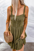 Swiss Dot Decorative Button Ruffle Hem Dress