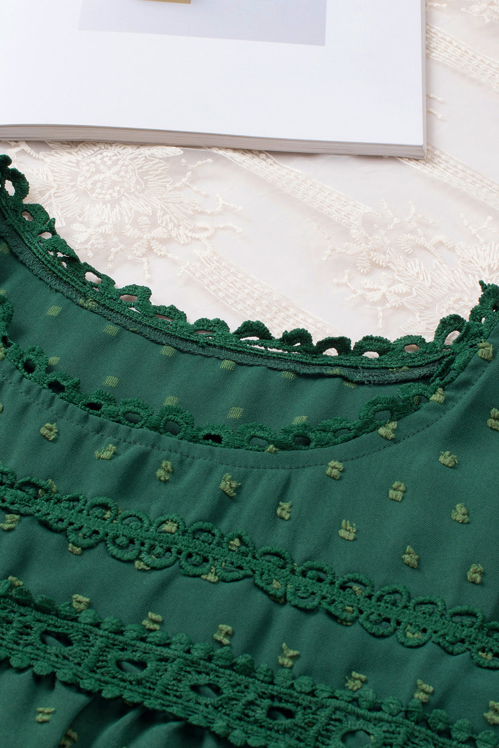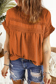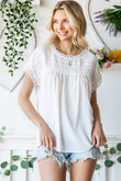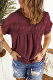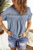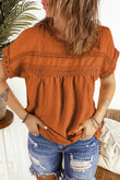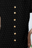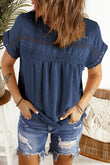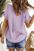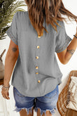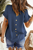 Swiss Dot Decorative Button Short Sleeve Blouse