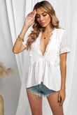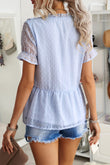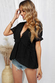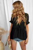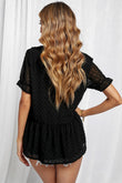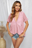 Swiss Dot Deep V Flounce Sleeve Blouse