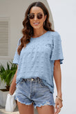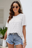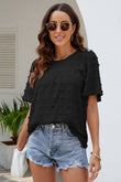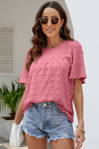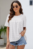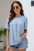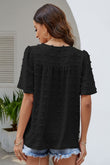 Swiss Dot Puff Sleeve Round Neck Blouse