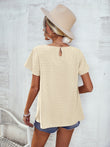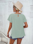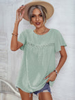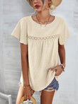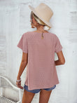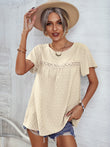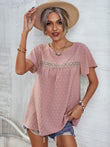 Swiss Dot Round Neck Flutter Sleeve Blouse