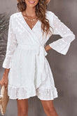 Swiss Dot Ruffled Tie-Waist Surplice Dress