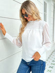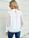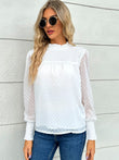 Swiss Dot Smocked Mock Neck Blouse
