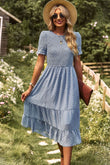 Swiss Dot Smocked Round Neck Short Sleeve Midi Dress