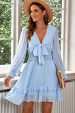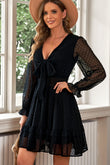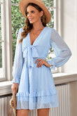 Swiss Dot Tie Front Frill Trim Plunge Dress