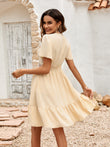 Swiss Dot V-Neck Openwork Puff Sleeve Dress