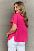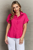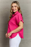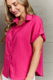 Textured Button-Up Cuffed Dolman Sleeve Shirt
